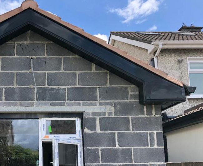 Black PVCu Fascia & Soffit Guttering The Challenge for Our latest Project was to match the Gutters on the existing residence to the new extension. It was black so it wasn’t too hard of a task. The completed job was done to a very high standard & the customer was delighted.