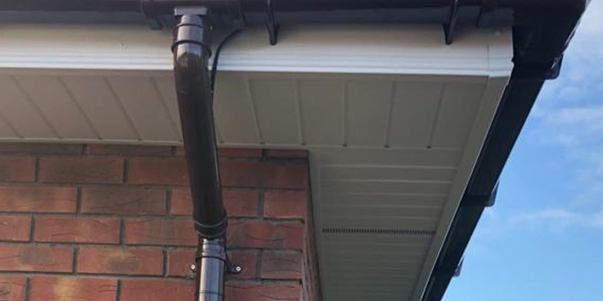 This project took us to a large Bungalow with some old leaking aluminium gutters. The original plans of the house didn’t include enough downpipes in the crucial areas of the building which put extra stress on all other downpipes. We where delighted to offer a stable planned solution with the planning, supply & fit of a beautiful new White Fascia & Soffit to contrast from the new brown Gutters. Need i say the client was delighted with the consultation, planning, installation & finish of the whole project.